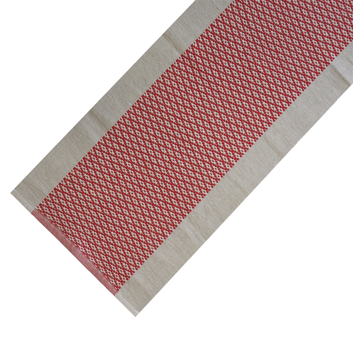 Kudottu perinne kuvio keskellä. Yksiväriset 6 cm reunat sivussa.