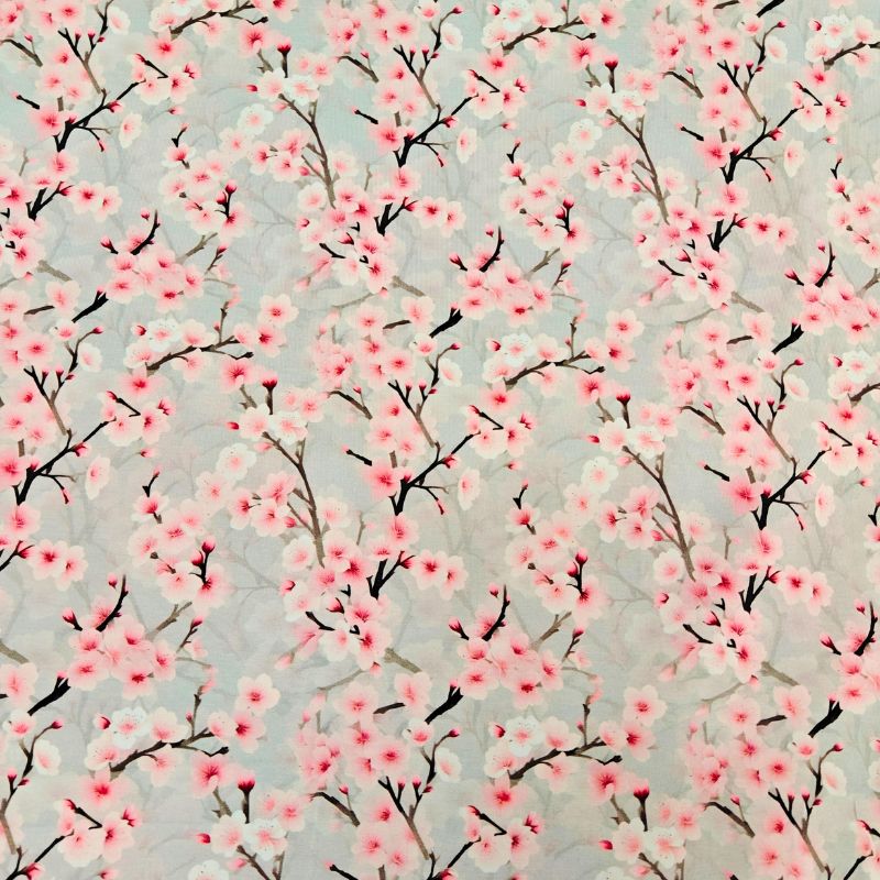 Herkkä, akvarellimainen kirsikankukka puuvillaelastaani trikoo