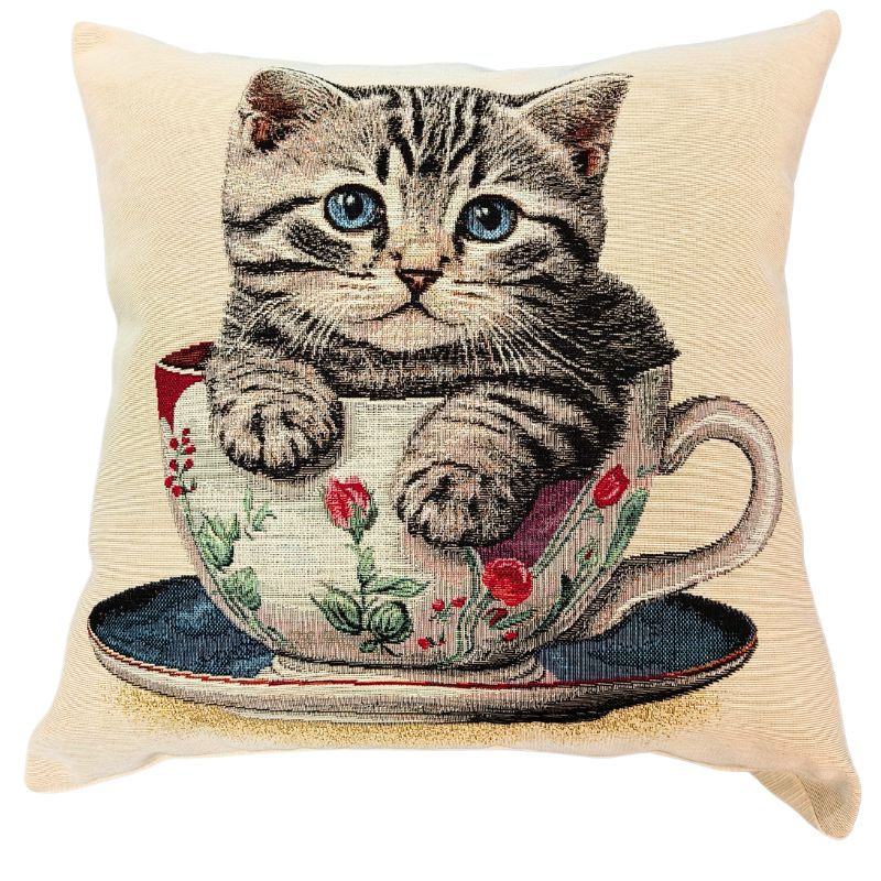 KISSANPENTU KAHVIKUPISSA, koristetyynynpäällinen