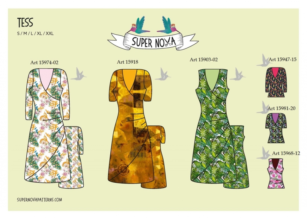 Kaavassa mekon sekä puseron kaavat kolmella eri hihan pituudella: hiaton, lyhyt hia sekä pitkä hiha.