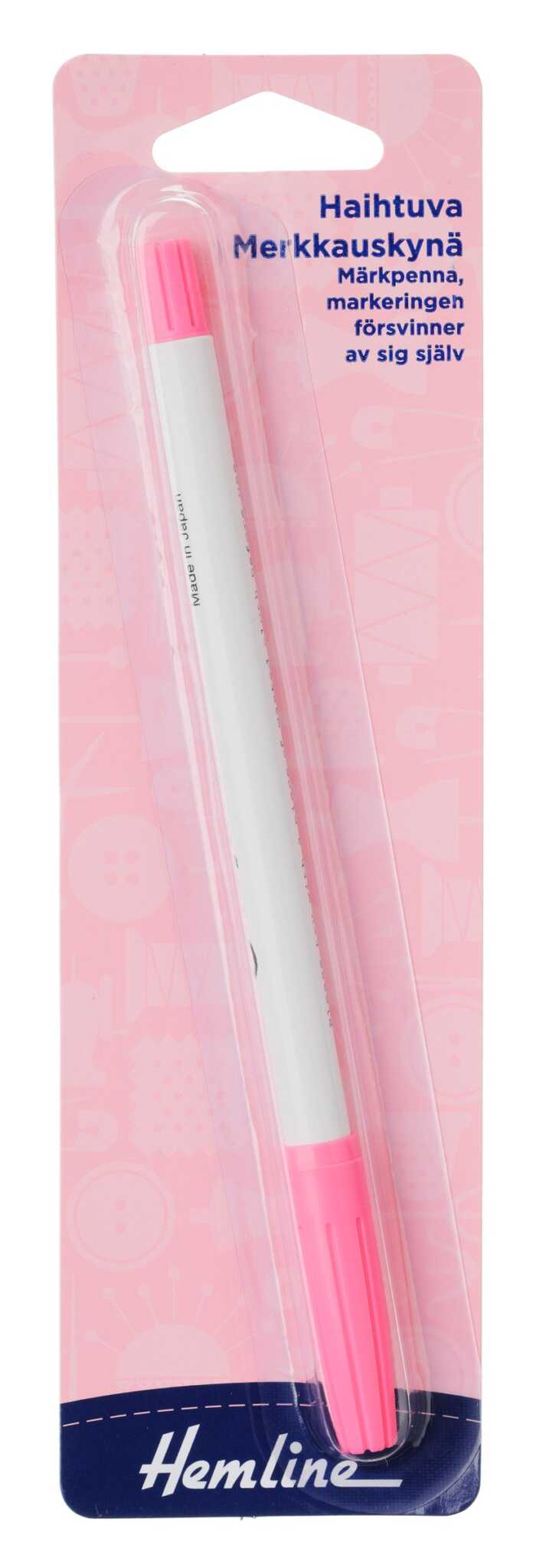 Haihtuva merkkauskynä esim. tilkkutöihin, kirjontaan ja muihin ompeluihin.