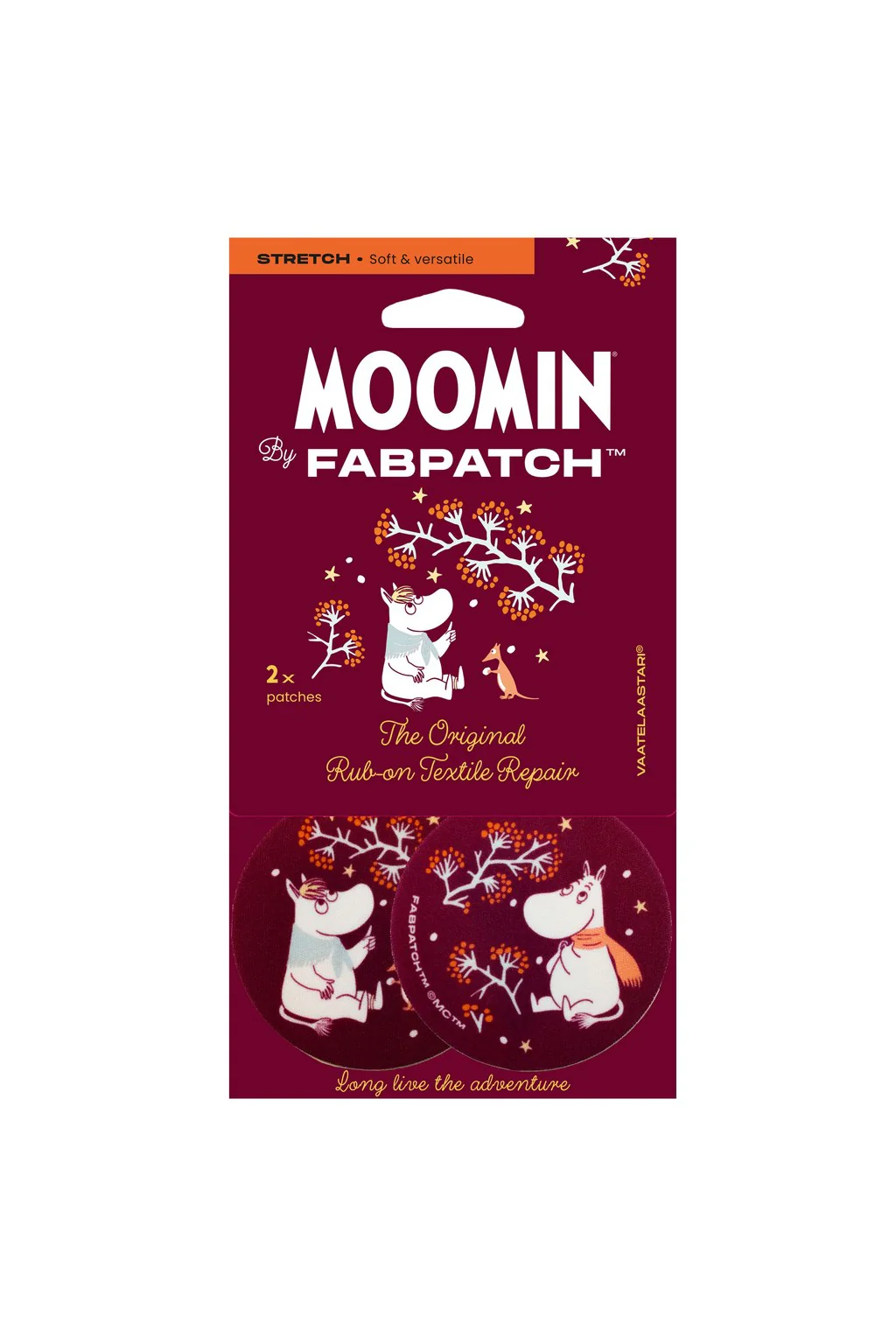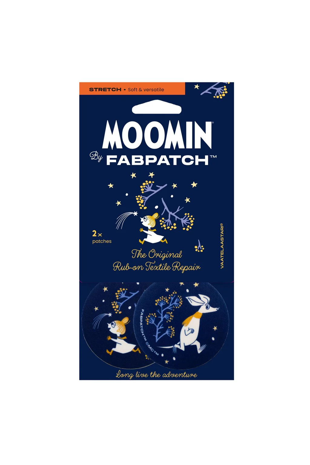 MOOMIN by FABPATCH™ -tuotteet sisältävät kaksi tekstiilien korjauspaikkaa, joissa on suloiset Muumipeikon ja Niiskuneidin kuvitukset.
