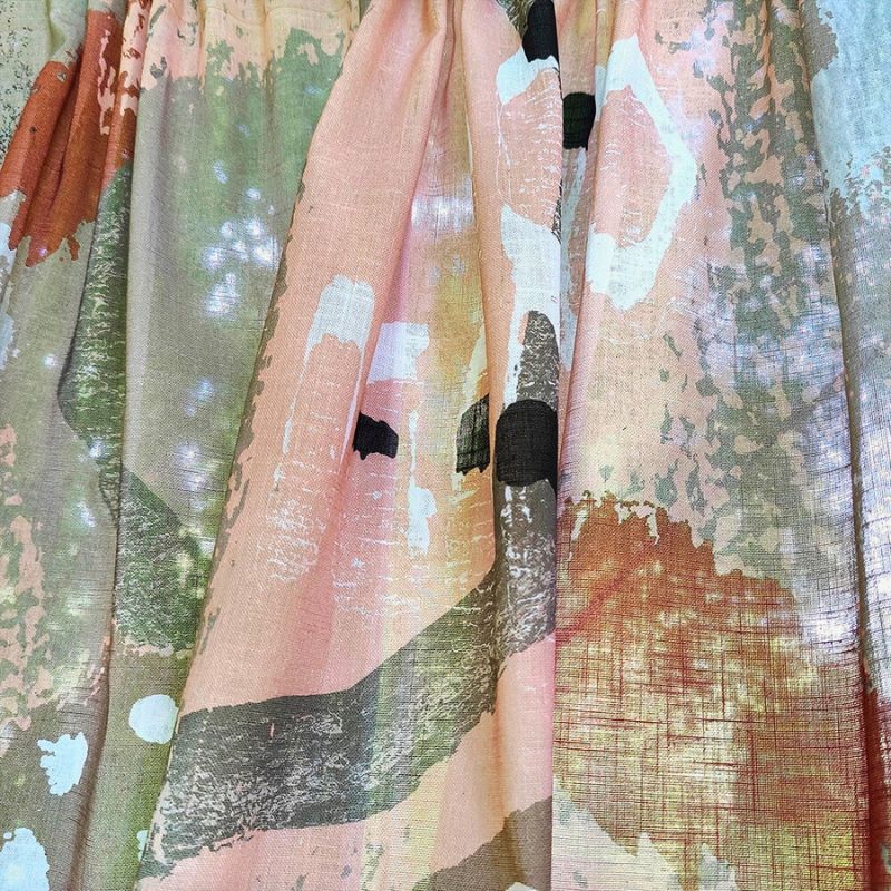 Puuvillasekoite on harvahkoon kudottu laadukas kangas. Valo siivilöityy kauniisti läpikuultavan puuvillasekoitteen läpi.