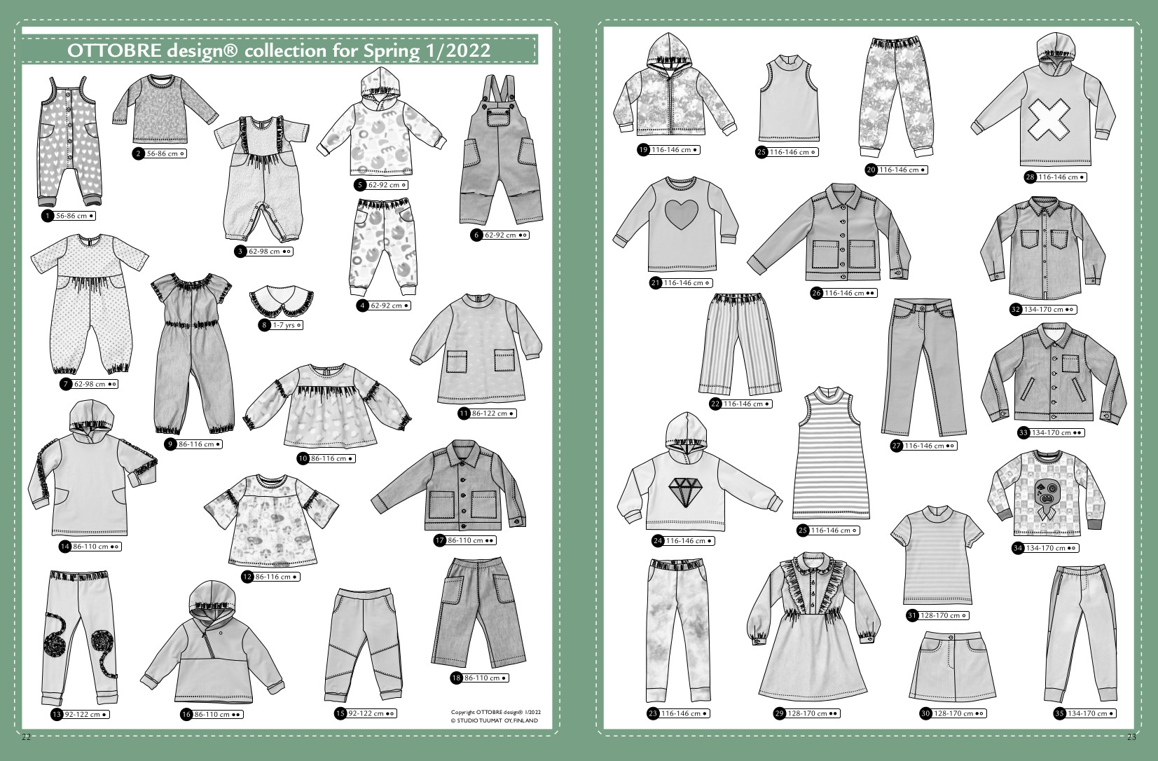 Vauvoja varten suunnittelimme pehmeät luomupuuvillaiset asukokonaisuudet: collegehaalarit, ribbipaidan, hupparin ja housut. Mukana myös olkainhaalarit vakosametista, kivat kokohaalarit harsopuuvillasta ja puuvilladenimistä sekä suloinen irtokaulus.