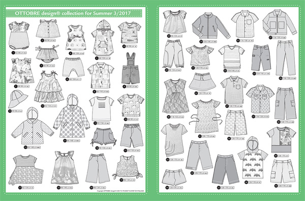 Somat rantaleikkiasut herkullisista kesäkankaista: leikkipuku, toppi ja bloomersit vauvoille sekä jerseypaidat, mekot, shortsit ja shortsihaalarit taaperoille.