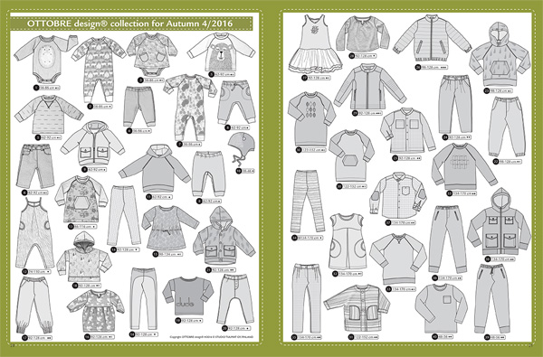 Kivoja vaatteita, joita koululaiset osaavat ommella jo itse. Kimmeltävä tunika ja svetaripaita glitter-neulokset. Leggingsit hoikalle tytölle ja perushousut printtipuuvillasta. Flanellipaita, svetaripaita ja -housut sekä upea monitaskuinen huppari. Svetarihousut ja jerseypaita myös miehelle.