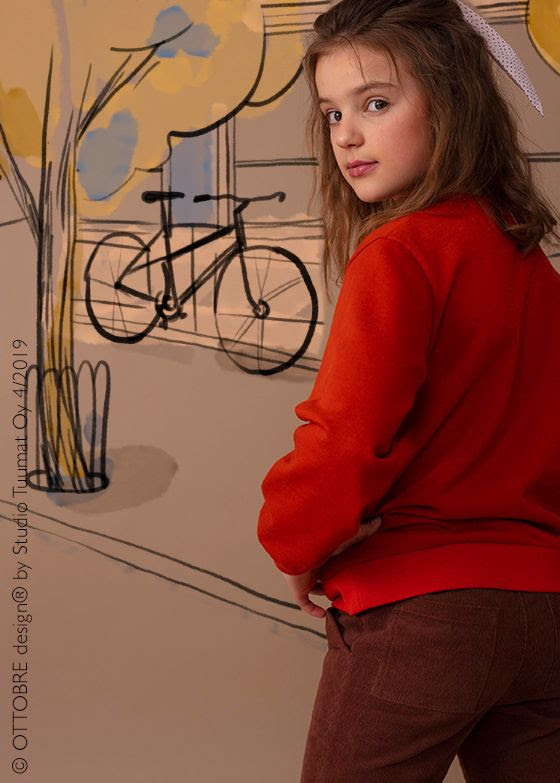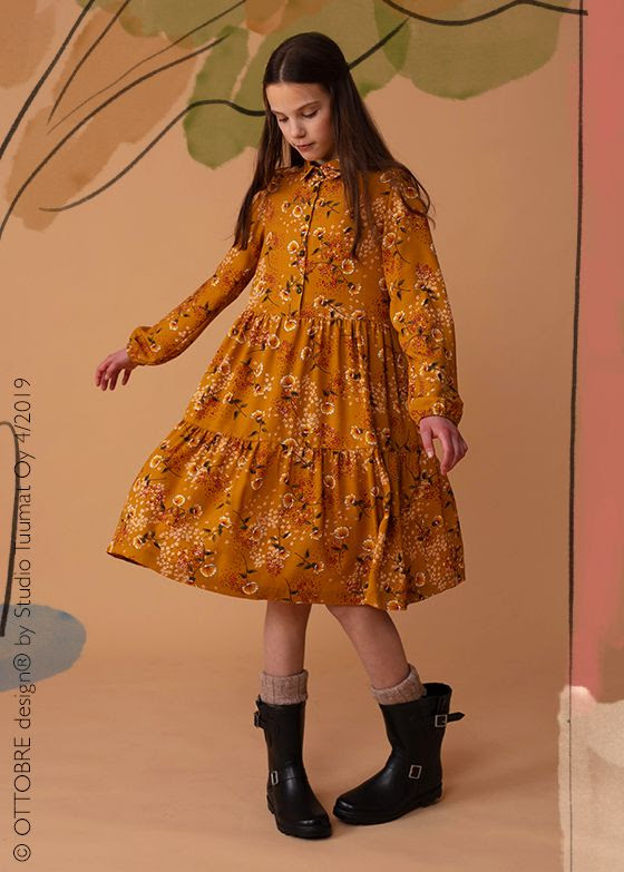 Hilpeä yhdistelmä tweediä, 70-lukua, leikkimielisyyttä ja nostalgiaa. Kaksi svetaria, sammarit ja ulkoiluhousut, kaksi söpöä pupumekkoa, romanttinen viskoosimekko, ribbipoolo ja leggingsit, olkainhousut ja luomuteddyturkki.