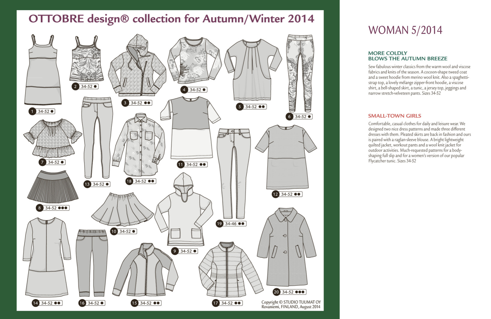 Ompele talven varalle upeat klassikkovaatteet syksyn lämpimistä villakankaista ja viskooseista. Kotelomainen takki tweedistä ja suloinen huppari merinovillaneulokseta. Mukana myös spagettiolkaiminen toppi, ihana meleerattu vetoketjuhuppari, paitapusero, kellohame, tunika, jerseypusero, leggingsit ja kapeat velveton-samettihousut.