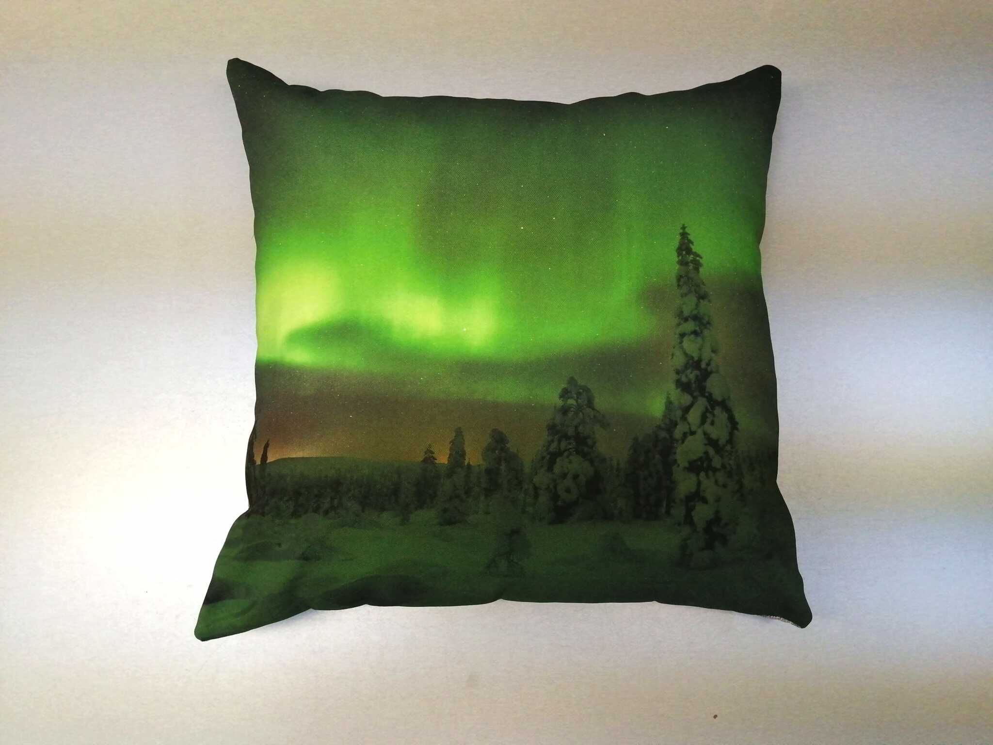 Valokuvaaja Jaakko Tähden valokuvasta kankaalle painettu luontokuva – revontulimaisema