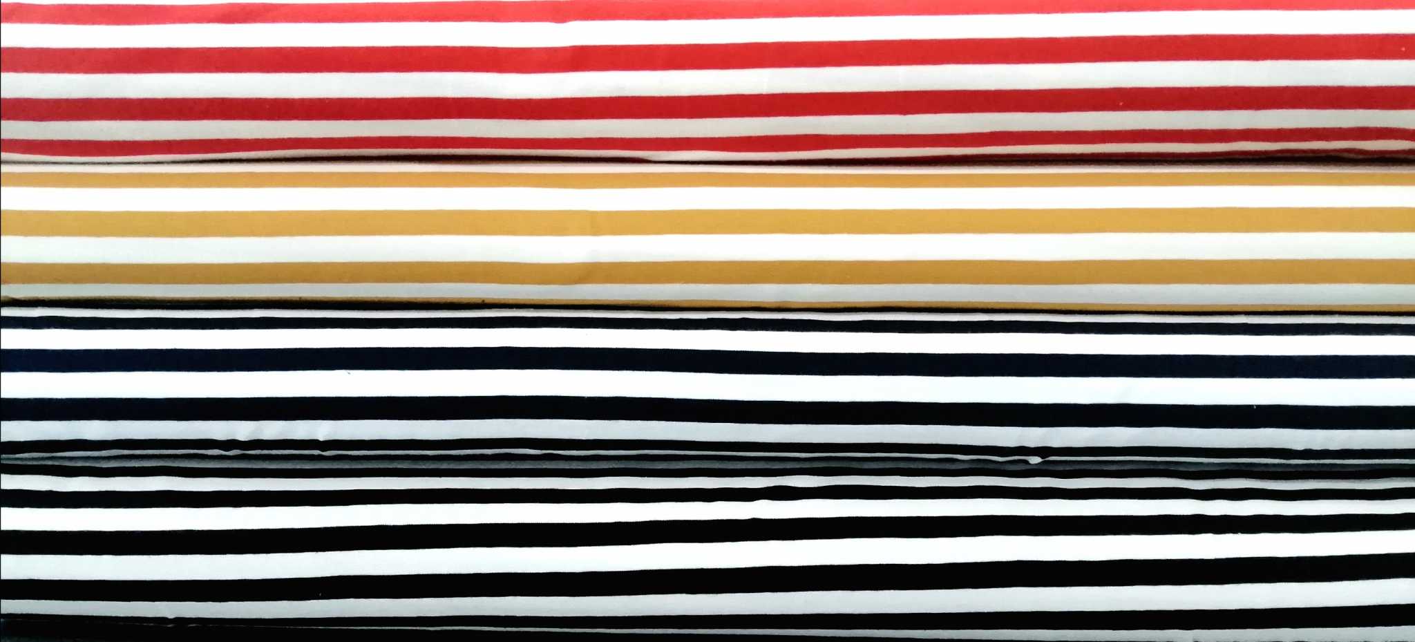 kankaan metrihinta: punaraita 25,00 €/m, muut värit 22,50 €/m.