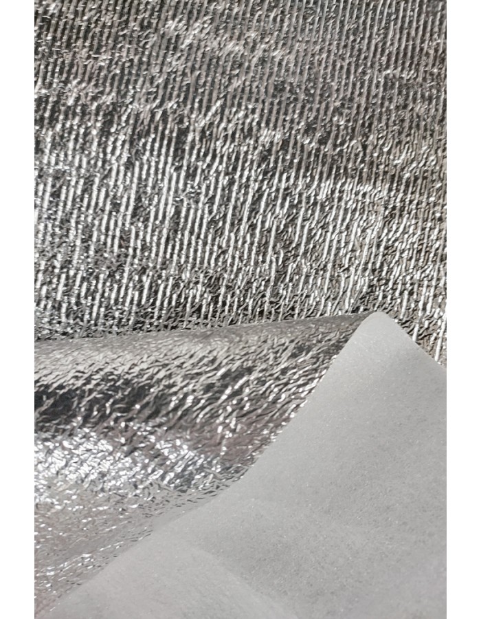 Thermo eristekangas on hopeapintaista kangasta, jonka toinen puoli on ohutta solumuovia.