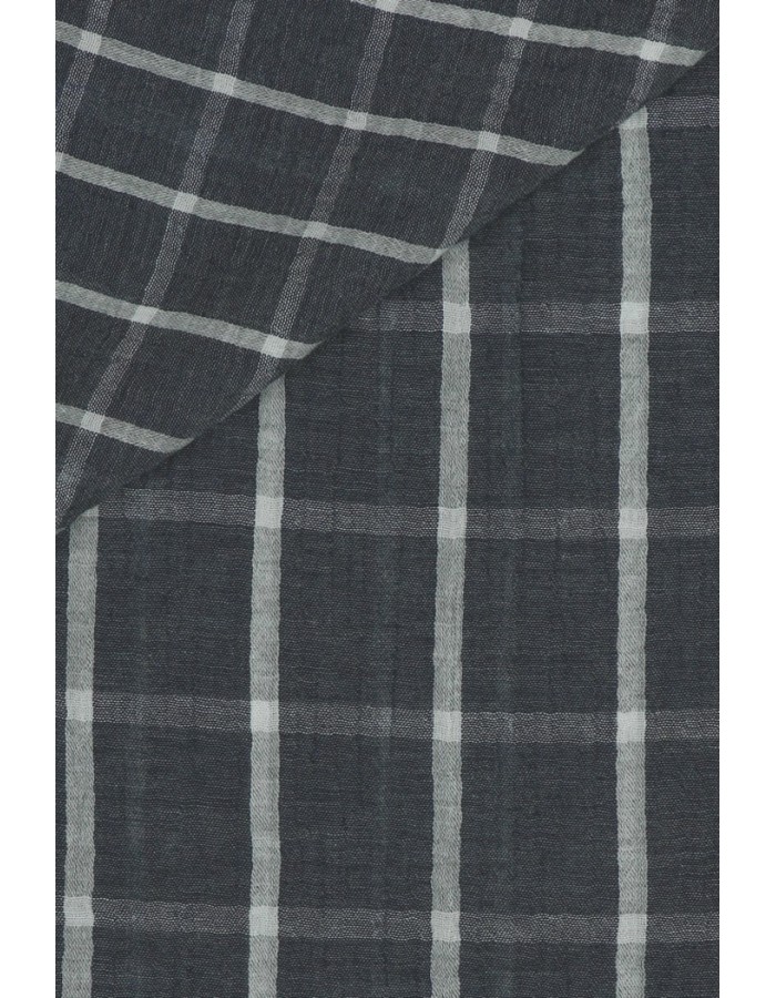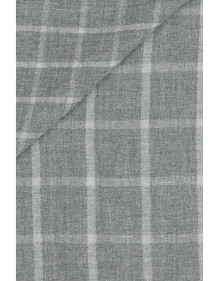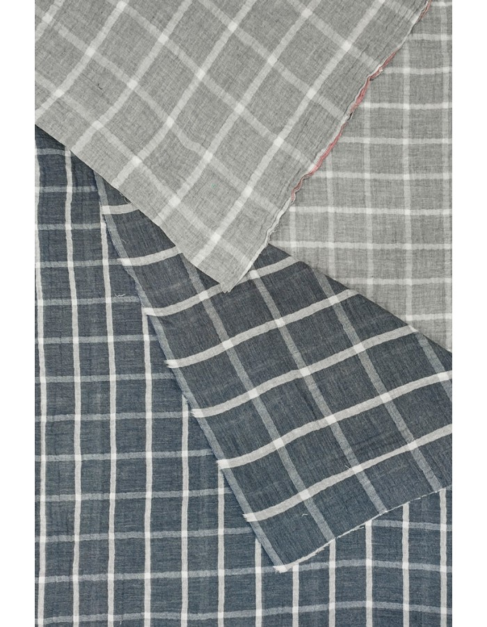 Pehmeä tuplaharsokangas, jossa toisella puolella on pienempi ruutukuvio ja toisella puolella suurempi.